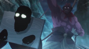 в 1й же серии, закос на Хладнокровного Ходзуки, особенно Люцифер удался, его даже тот же мужик озвучивал